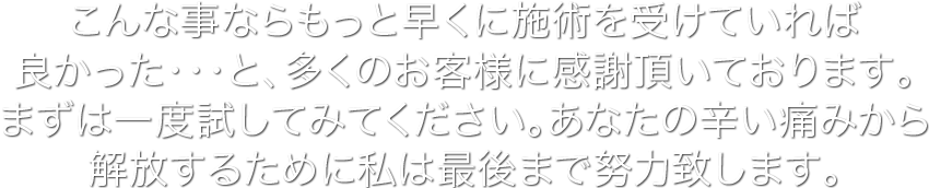 ここまで聞いてまだ不安なあなたへ、初回の改善を実感出来なければ施術費を全額返金いたします。
