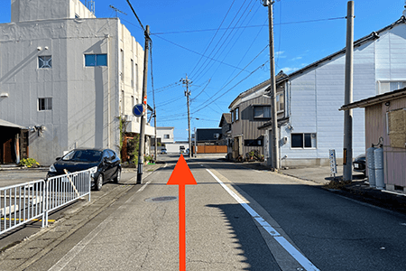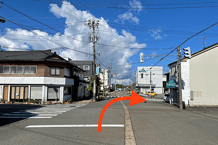 1春江駅を背にして目の前の信号を右折します。