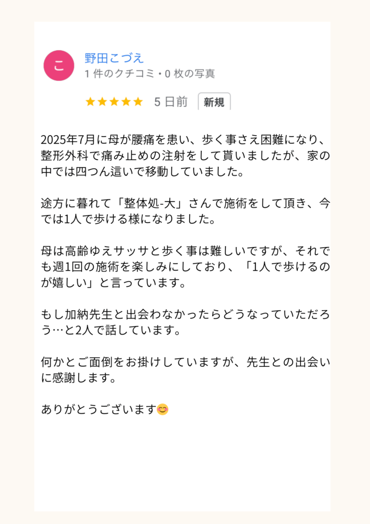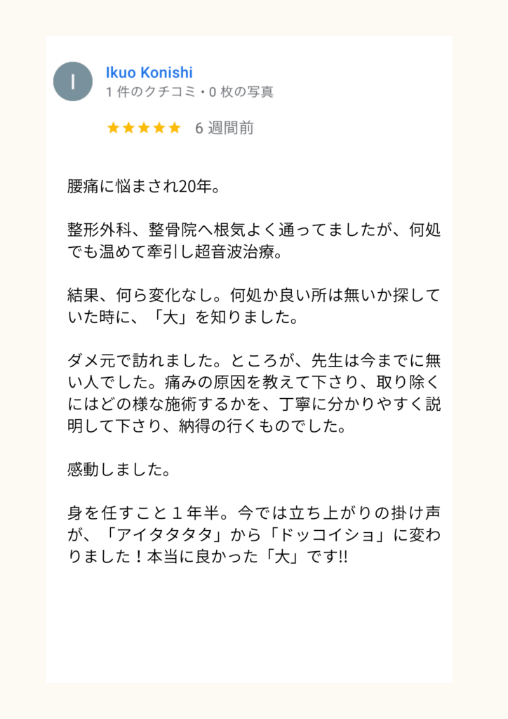 腰痛でお困りなら坂井市の整体処 大-DAI-